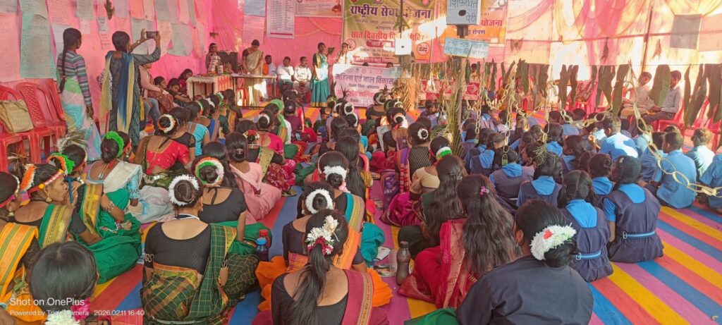 कोण्डागांव,13 फरवरी 2026 कलेक्टर नुपूर राशि पन्ना के निर्देशन तथा जिला कार्यक्रम अधिकारी रेनू प्रकाश महिला एवं बाल विकास विभाग के मार्गदर्शन में 11 फरवरी को ग्राम पंचायत उमरगांव, केंवटी, में 07 दिवसीय राष्ट्रीय सेवा योजना कार्यक्रम के अंतर्गत विशेष जागरूकता कार्यक्रम आयोजित किया गया। यह आयोजन शासकीय आदर्श आवासीय कन्या महाविद्यालय, कोण्डागांव द्वारा किया गया।कार्यक्रम के दौरान “बेटी बचाओ, बेटी पढ़ाओ” अभियान के तहत International Day of Women and Girls in Science के अवसर पर महिलाओं एवं बालिकाओं के अधिकार, समानता और सशक्तिकरण विषयों पर विस्तार से चर्चा की गई। कार्यक्रम का मुख्य उद्देश्य महिलाओं एवं बालिकाओं को उनके वैधानिक एवं संवैधानिक अधिकारों के प्रति जागरूक करना, लैंगिक समानता को बढ़ावा देना तथा महिलाओं के विरुद्ध होने वाली हिंसा का विरोध करने के लिए समाज को संवेदनशील बनाना था।इस अवसर पर बालिकाओं की शिक्षा, स्वास्थ्य, पोषण एवं सुरक्षा, लैंगिक भेदभाव के उन्मूलन, बाल विवाह की रोकथाम तथा महिला सशक्तिकरण जैसे विषयों पर मार्गदर्शन दिया गया। “बेटी बचाओ, बेटी पढ़ाओ” अभियान के अंतर्गत भ्रूण हत्या एवं कन्या शिशु हत्या जैसे अमानवीय कृत्यों के प्रति जागरूकता, शिशु लिंगानुपात में सुधार, किशोरी बालिकाओं की सुरक्षा एवं शिक्षा को बढ़ावा देने पर विशेष जोर दिया गया।कार्यक्रम में महतारी स्वच्छता प्रबंधन, पोषण के महत्व, एनीमिया से बचाव, सुरक्षित मातृत्व, प्रसव पूर्व देखभाल तथा मासिक धर्म स्वच्छता जैसे स्वास्थ्य संबंधी विषयों पर भी जानकारी प्रदान की गई। साथ ही महिलाओं एवं बच्चों से संबंधित कानूनी अधिकारों के संबंध में भारतीय न्याय संहिता, भारतीय नागरिक सुरक्षा संहिता, कार्यस्थल पर लैंगिक उत्पीड़न निषेध नियम, टोनही प्रताड़ना अधिनियम, लैंगिक अपराधों से बालकों का संरक्षण अधिनियम POCSO सहित चाइल्ड हेल्पलाइन 1098, महिला हेल्पलाइन 181, एम्बुलेंस सेवा 108 एवं स्वास्थ्य सेवा 102 के बारे में विस्तृत जानकारी दी गई।कार्यक्रम में मुख्य अतिथि के रूप में जिला पंचायत अध्यक्ष श्रीमती रीता सोरी उपस्थित रहीं। विशिष्ट अतिथियों में सरपंच श्रीमती रूपती मरकाम, उप सरपंच ललित मेश्राम, आर.के. जैन, ज्योति जैन, लच्छिंदर पोयाम, आर. जॉन, आर.के. महाजन, तिलकचंद्र देवांगन, अनिक्षा अंचल सोनी, मिशन शक्ति से जिला मिशन समन्वयक रीना सिंह ठाकुर, जेंडर विशेषज्ञ माधुरी उसेण्डी एवं कार्यालय सहायक जयंत कुमार साहू सहित महाविद्यालय की छात्राएं, स्कूली बच्चे एवं ग्रामीणजन उपस्थित रहे।