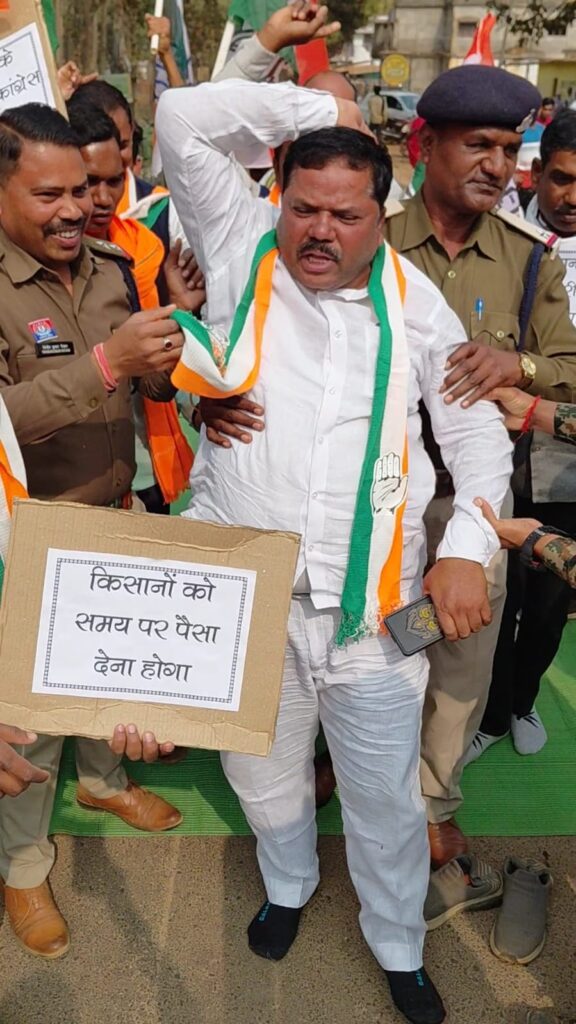 जिला कोंडागांव केशकाल विश्रामपुरी धान खरीदी की तारीख बढ़ाने की मांग, कांग्रेस कमेटी व किसानों ने किया चक्का जाम, कई घंटों तक जमकर विरोध।भाजपा सरकार केवल आंकड़ों व कागजी घोषणाओं में व्यस्त: संतराम नेताम।विश्रामपुरी/ : धान खरीदी की तारीख बढ़ाने को लेकर पूर्व विधायक संतराम नेताम के नेतृत्व में ब्लॉक कांग्रेस कमेटी बड़ेराजपुर ने विश्रामपुरी मार्ग पर चक्का जाम किया। इस दौरान प्रदर्शनकारियों ने सड़क पर बैठकर चक्का जाम किया. इस दौरान प्रदर्शनकारियों ने कई घंटों तक सड़क जाम प्रदर्शन कर नारेबाजी किया। यह चक्का जाम किसानों के धान खरीदी में हो रही समस्या को लेकर किया गया है. इस दौरान प्रदर्शनकारियों ने फरवरी तक धान खरीदी की तारीख बढ़ाने की मांग की। पूर्व विधायक संतराम नेताम का कहना है कि सरकार धान खरीदी की अंतिम तारीख 31 जनवरी रखी है, लेकिन अब तक जिले में कई समस्या बनी हुई है. कई किसानों के टोकन नहीं कटे हैं. ऐसे में अब धान बेचने के लिए किसानों के पास महज 2 बचे हुए हैं और किसानों की समस्या जस की तस बनी हुई है। हजारों किसानों की धान नहीं खरीदी गई है। यह स्थिति भाजपा सरकार की पूर्ण विफलता व प्रशासनिक अराजकता को दर्शाती है।कई समस्याओं से जूझ रहे किसान:संतराम नेताम ने आगे कहा कि जिले में जिस तरीके से लक्ष्य पूरा होने की बात कही जा रही है वो पूरी तरह से गलत है।उन्होंने कहा कि टोकन की समस्या, खरीदी लिमिट में कटौती और जानबूझकर प्रक्रिया को धीमा रखना किसानों के साथ अन्याय है। भाजपा नेता कई मंच से किसान हितैषी होने का ढोंग करती है, लेकिन जमीनी हकीकत यह है कि किसान अपनी मेहनत की उपज बेचने के लिए खरीदी केंद्र के चक्कर काटने को मजबूर है। कई किसानों के टोकन आज तक नहीं कटे हैं, जिससे वे आर्थिक व मानसिक संकट में फंस गए हैं। यदि समय रहते धान खरीदी की तारीख नहीं बढ़ाई गई और सभी किसानों की धान खरीदी नहीं की गई, तो इसका जिम्मेदार भाजपा शासन है। कांग्रेस किसानों के साथ अन्याय किसी भी कीमत पर बर्दाश्त नहीं करेगी। धान खरीदी को लेकर शुरुआत से ही ध्यान नहीं दिया गया। शुरू से धान बेचने टोकन की समस्या रही। सरकार के गलत नीतियों के कारण किसान कर्ज के बोझ तले दबता जा रहा है। भाजपा सरकार को तत्काल ठोस निर्णय लेना होगा। भाजपा सरकार केवल आंकड़ों व कागजी घोषणाओं में व्यस्त है।वास्तविकता यह है कि हजारों किसान आज भी अपनी धान बेचने से वंचित हैं। कोंडागांव जिले में ऐसे कई किसान है, जिनकी धान की खरीदी अब तक केंद्रों में नहीं हुई है और टोकन भी नहीं कटे हैं. कांग्रेसियों ने चेतावनी दी है कि अगर फरवरी तक धान की खरीदी की तारीख नहीं बढ़ाई गई तो आगे उग्र आंदोलन किया जाएगा. वहीं परेशान किसान भी अपनी समस्या लेकर प्रदर्शन में शामिल रह